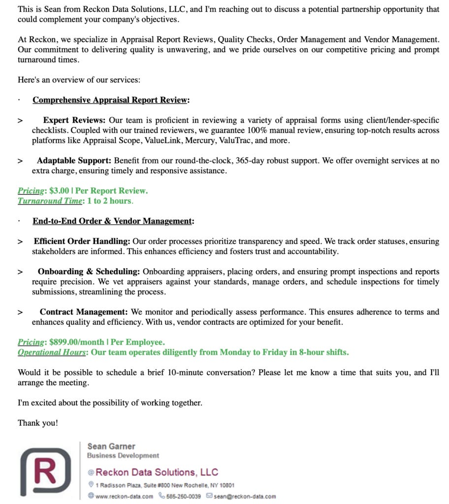 Appraisal reviews for $3 each and 1-2 hour turn times. It’s hard to imagine any appraiser accepting these terms, and it’s hard to imagine any lending institution accepting these as valid reviews. It’s incredibly disrespectful to the profession as they tout efficiency.