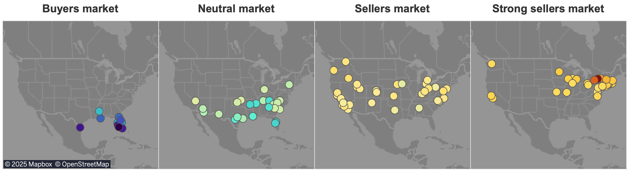I’m a subscriber to ResiClub, an excellent resource on the US housing market. They recently analyzed the Zillow Market Heat Index (ZMHI), which I tend to check in with periodically. My reluctance to rely entirely on Zillow products is related to the travesty of the Zestimates, often discussed here. But I digress…The ZMHI shows the significant regional differences in the housing market. It should be noted that ResiClub has concerns about the ZMHI exacerbating results in some regions. So, I also checked in with The Realtor.com Market Hotness Index, which is a similar effort. By the way, who at Realtor.com dubbed an index a name that a Baby Boomer would have used after a few too many cocktails to awkwardly describe peers walking around the community swimming pool in risque bathing suits? Hotness? Really? At their core, these indices are in the same housing toolbox as Months Of Supply (mos), which is the intersection of supply and demand. MOS is explained as the number of months it would take to sell all listings at the current rate of sales. I also refer to this as the “market pace” or how the market “feels” on the front lines.