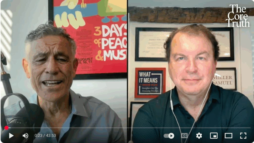 I had a terrific conversation with Roberto and John last week on the state of housing. They asked good questions and I tried to convey my answers with as much clarity as I could in a market that is really confusing for consumers. And from the listener count on their Youtube channel, the conversation seemed to resonate with their audience. Click on the link above or the image below to replay the broadcast.