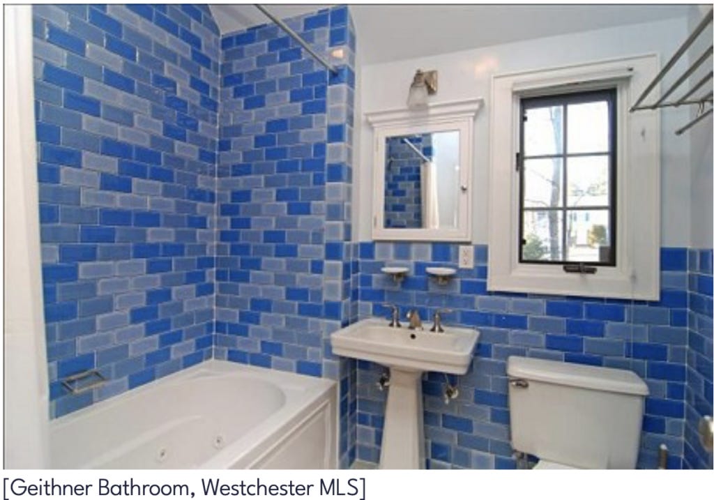 I chuckle when I think back to this old chestnut of story. Treasury Secretary Timothy Geithner, during the Obama administration (remember him?), famously couldn’t sell his house, and a lot of attention was focused on his blue bathroom since Zillow said homes at the time sold for a $5,400 premium when they had a blue bathroom. Classic junk stats. LOL.