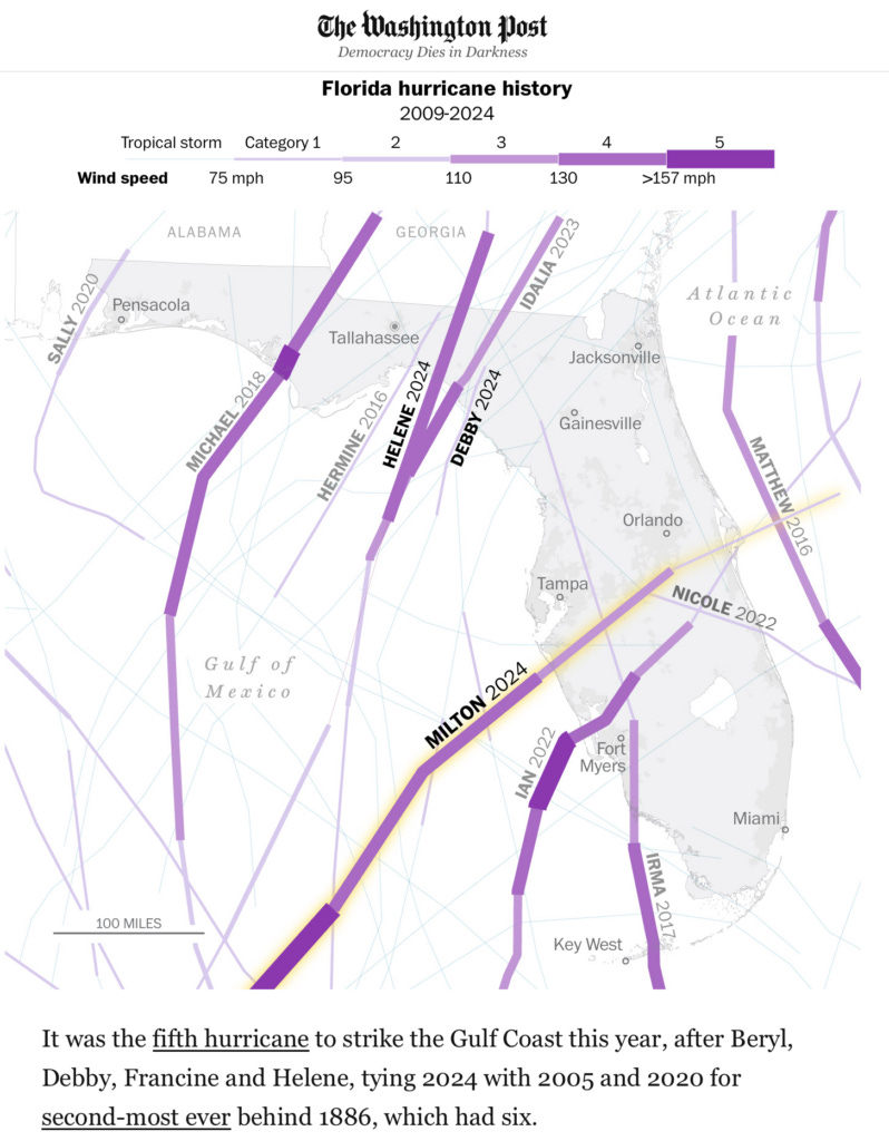 The current state of Florida’s insurance pool is being stretched to the limit, weakening the ability to back up insurance companies that offer coverage. Milton was forecasted to cause $100 billion in damage, but it looks like it may be as low as $60 billion, yet that isn’t “low.” We will probably see a surge (sorry) in hurricane-proof construction beyond the revamped building codes created in the state after Hurricane Andrew in 1992. The frequency and intensity of storms continue to expand each year, as it has for the past three decades. The higher rate of storms will further polarize the housing stock, with new construction standing up better against adverse weather conditions. In contrast, existing housing stock would continue to generate massive damage claims.