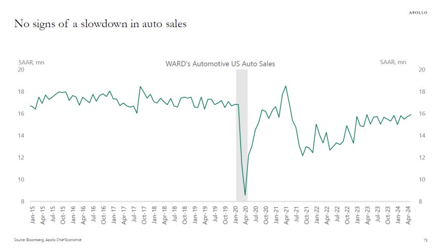 Car buying tends to do better with a strong job market (which keeps rates high) and high wages. We continue to see high rates because of low unemployment, the latter of which helps the car market.