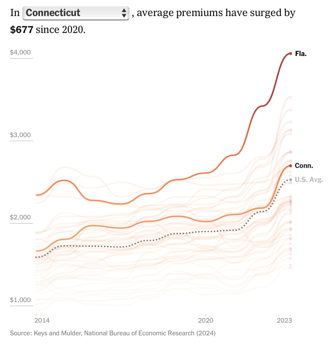 While Florida coverage costs are the highest, my state of Connecticut and most others have seen costs surge since 2020. New York County (Manhattan) has seen insurance costs surge 87.3% since 2020.
