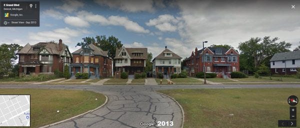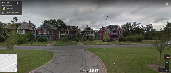 I’ve shared this @DetroitStreetVu Twitter account before but I continue to be obsessed with it. Since the Detroit bankruptcy, the deterioration of the outlying housing stock continues. These google pics illustrate just how much. Click to expand each for full the impact.