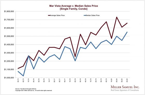 – Venice single family average sales size jumped to a new record square footage, driving median sales to a record as well