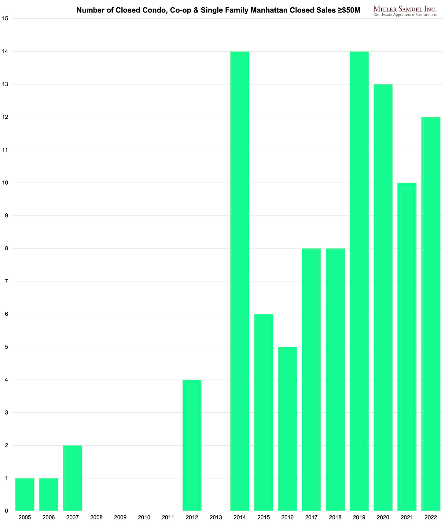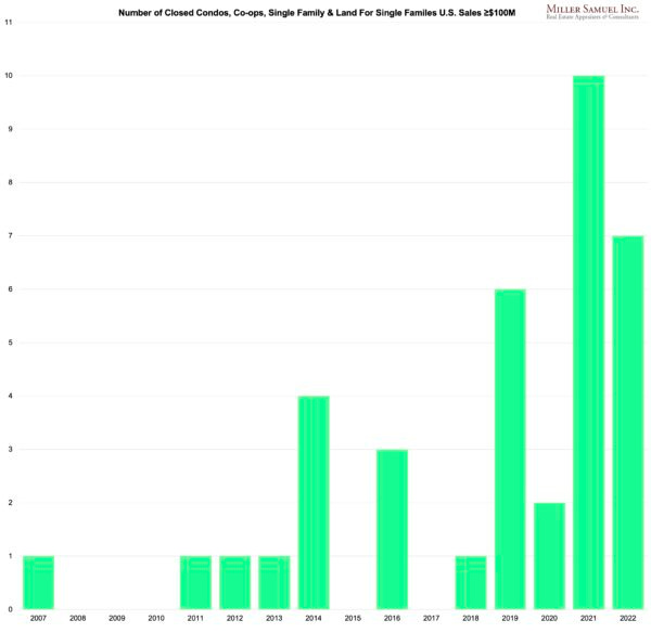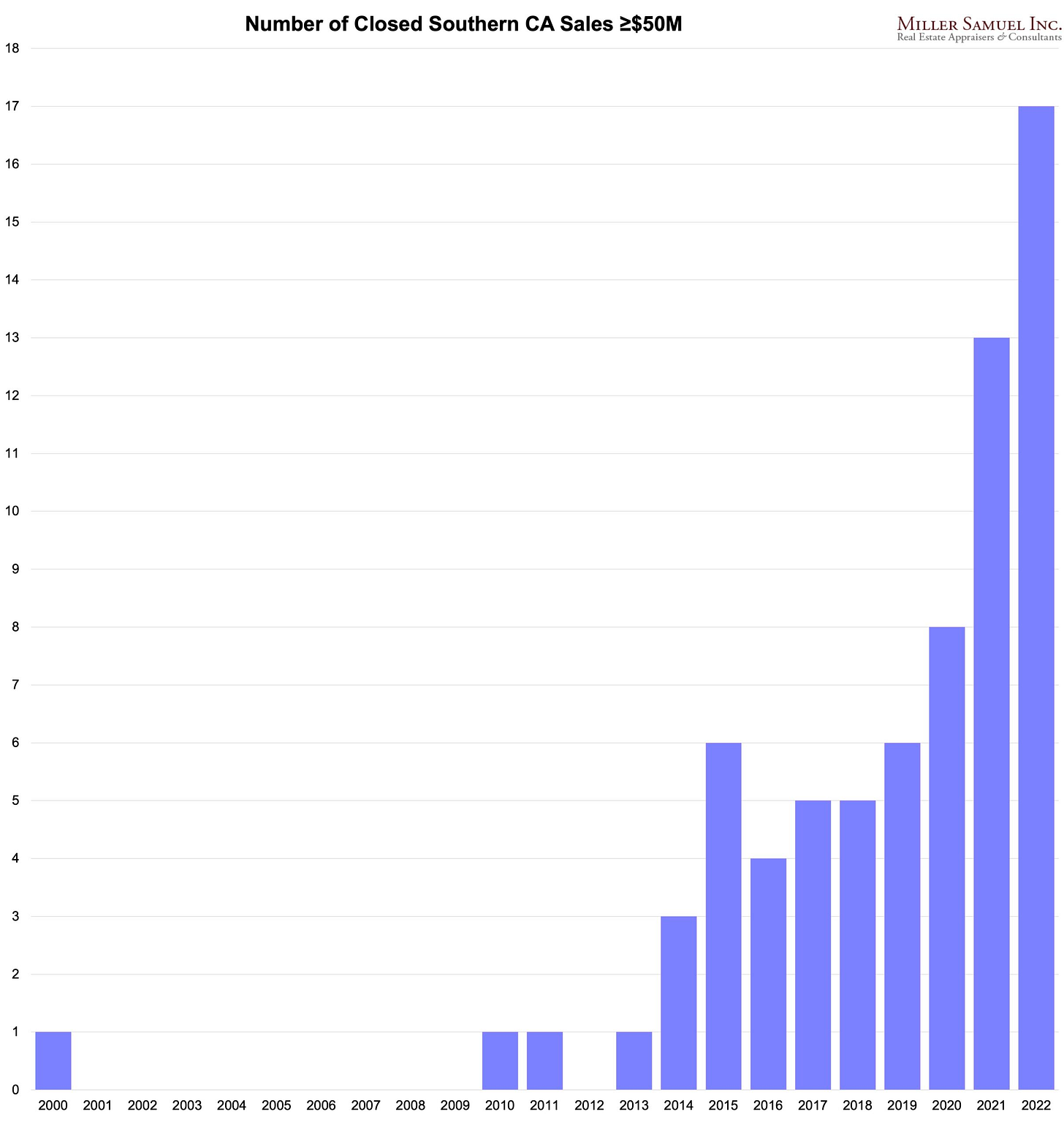 This has been quite the year in aspirational pricing. I was counting new super luxury sales up to the end of the year. While 2022 was front-end loaded, U.S. sales at or above the $50 million threshold were the second-highest in history after 2021.