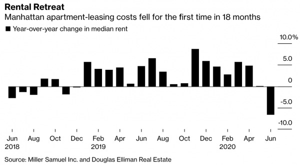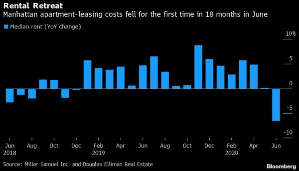 Manhattan Apartment Rents Slide After Exodus Empties Buildings [Bloomberg]