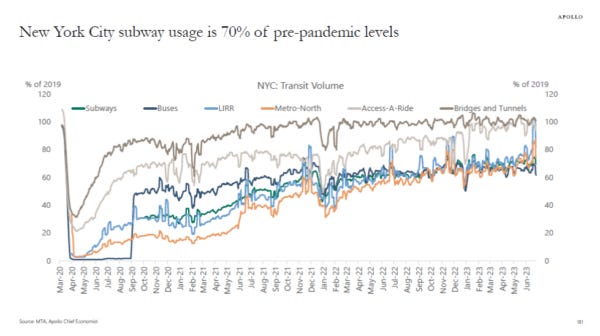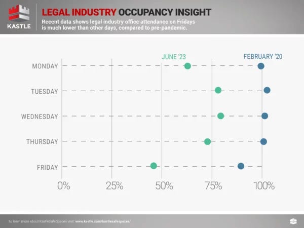Remember that Kastle charts are overstating occupancy* because their pre-pandemic occupancy benchmark was 100% which is simply incorrect (*measures card swipe activity as a proxy for occupancy).
