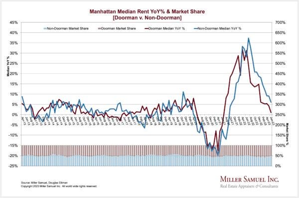 – Non-doorman and doorman median rental prices reached new highs