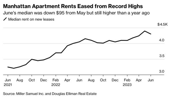 “After three months reaching new highs, median rent slipped to the second-highest on record.”