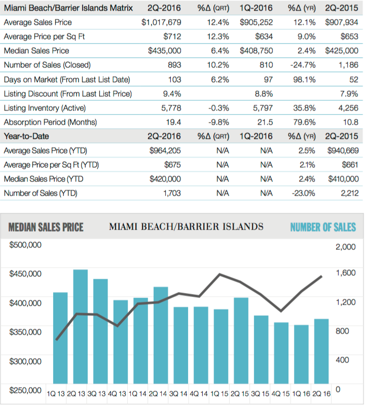 Elliman Report: Miami Beach + Barrier Islands Sales 2Q 2016