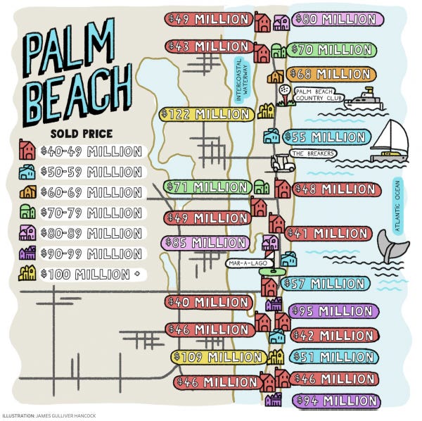 There was an epic Wall Street Journal piece today: Palm Beach Real Estate Is So Hot, at Least 22 Homes Sold for $40M-Plus Since Covid that is chock full of visuals of recent home sales.