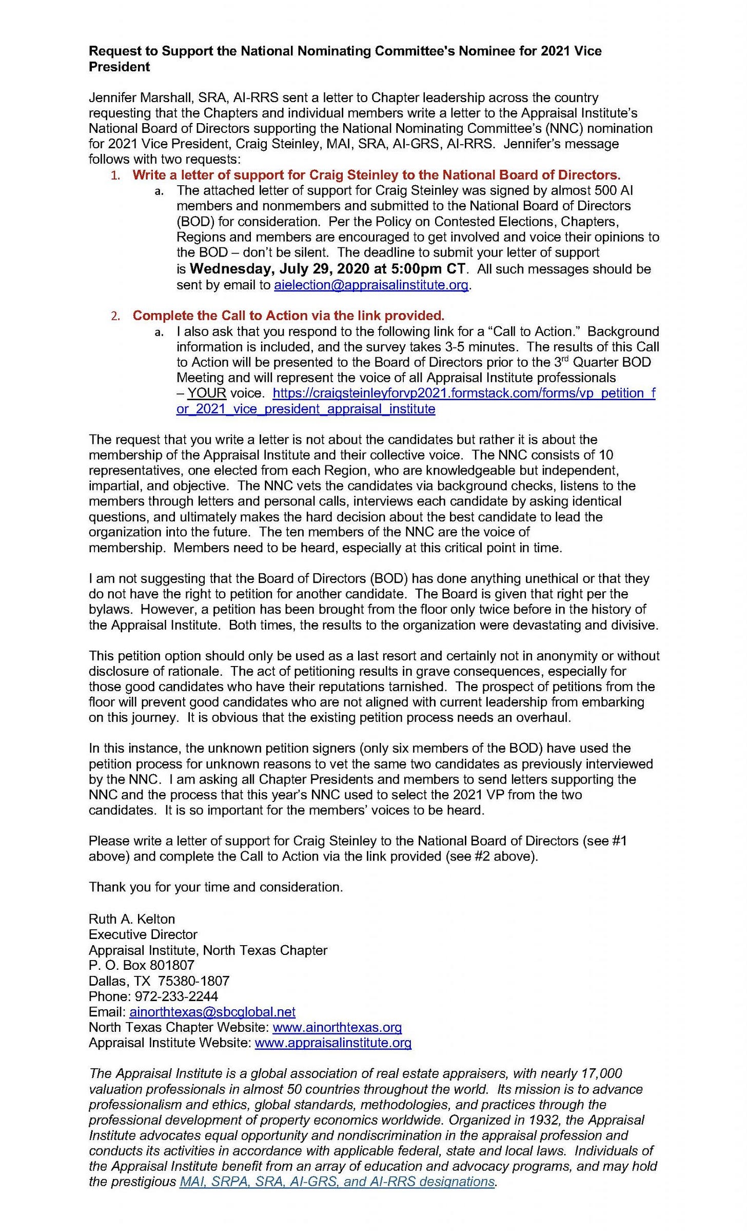 Anne L. Johnson lays the situation out in her July 21, 2020 note that was sent in support of Craig Steinley, the current (only legitimate) nominating committee choice. I’m sure all board members are aware of this dark moment in Appraisal Institute history more than a decade ago and now is the time to start asking questions and demonstrate integrity. Fingers crossed.