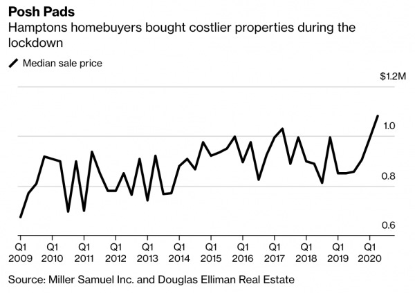– Hamptons home prices skyrocket due to demand from NYC coronavirus fleers [NY Post]