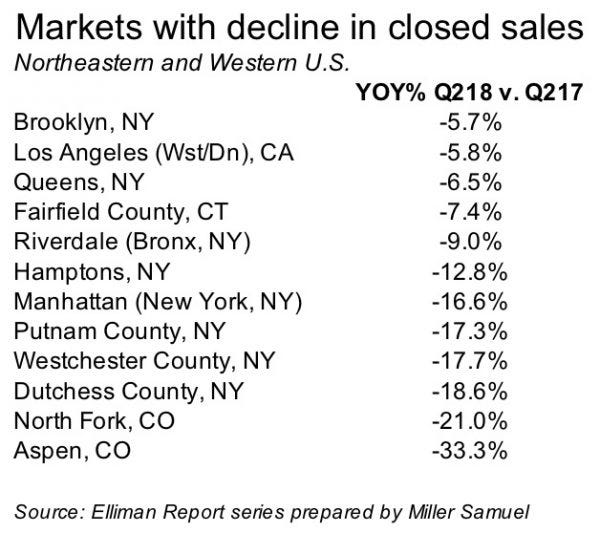 Long Island metrics show tight conditions on closed sales but easing conditions with more current metrics: total pending sales (contracts) for Long Island, excluding Hamptons and North Fork, are down 14.1% year over year and new pending sales (signed in Q2) are down 12.7%. The Long Island market tends to behave a lot like the U.S. existing home sale market for closed sales but Long Island has been outperforming the U.S. aggregate existing trends as U.S. existing home sales have been falling for 5 consecutive months. Rising price trends for 5 years combined with higher mortgage rates and uncertainty with the new federal tax law has begun to slow activity in the housing market nationwide and more recently in Long Island.