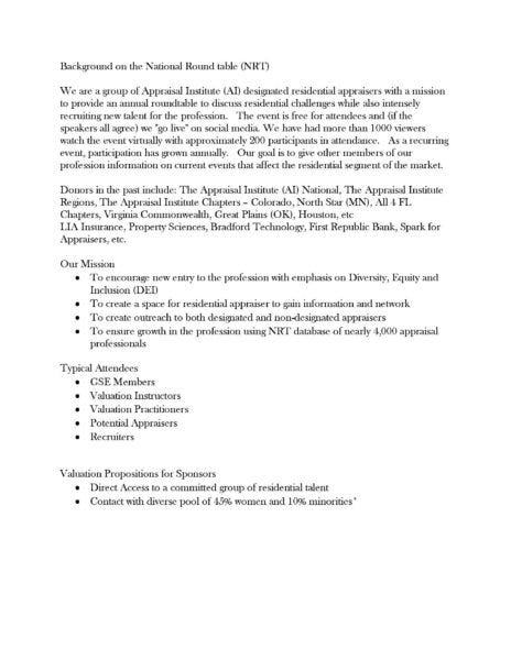 Here is some information on the organization. When they meet, they draw several hundred residential appraisers and have 1,000 or more attend their video events. It is a free event to: