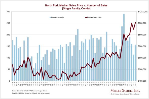 I’ve been the author of an expanding series of market reports for Douglas Elliman real estate since 1994. Covering the East End of Long Island, namely The Hamptons and North Fork, has been especially challenging. One of the characteristics of The Hamptons is that it has long been closely correlated with Manhattan real estate trends until the pandemic era. While Manhattan slumped after the pandemic lockdown ended, the East End soared, largely because of the new found ability to work remotely. The Hamptons shifted from a luxury second home vacation market to a “co-primary” or alternative primary market.