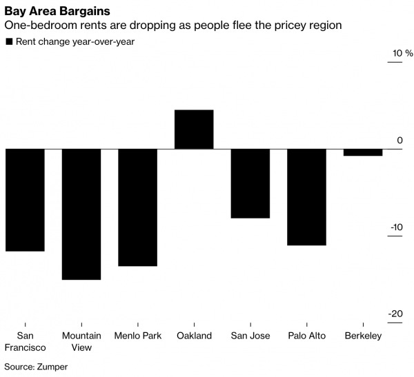 Tech’s Embrace of Remote Work Sends San Francisco Rents Plunging [Bloomberg]