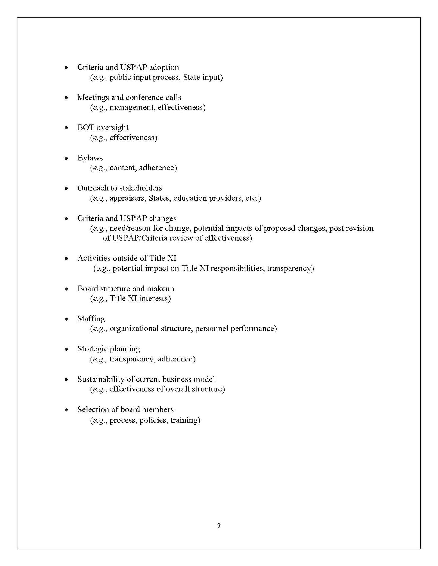 review the practices, procedures, activities, and organizational structure of the Appraisal