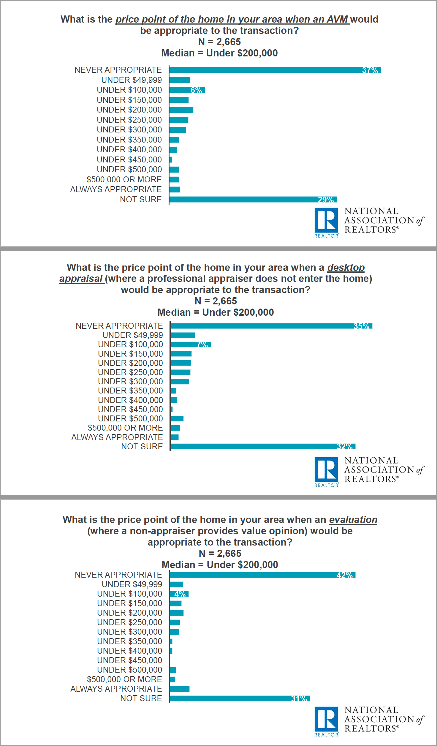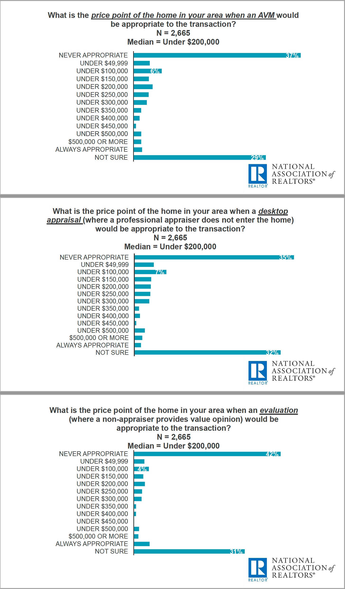 So the jury is still out for a third of respondents but a third are absolutely sure it is inappropriate. One can infer that appraisers have an opportunity to convey what AVMs really are to the public.