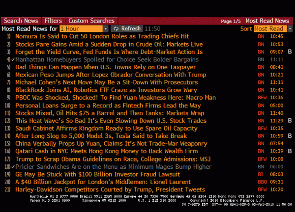 Did I tell you that the market report coverage on Bloomberg Terminals (±350K subscribers) was the fourth most read story last Tuesday? Uh, no so here’s the rankings with a chart.