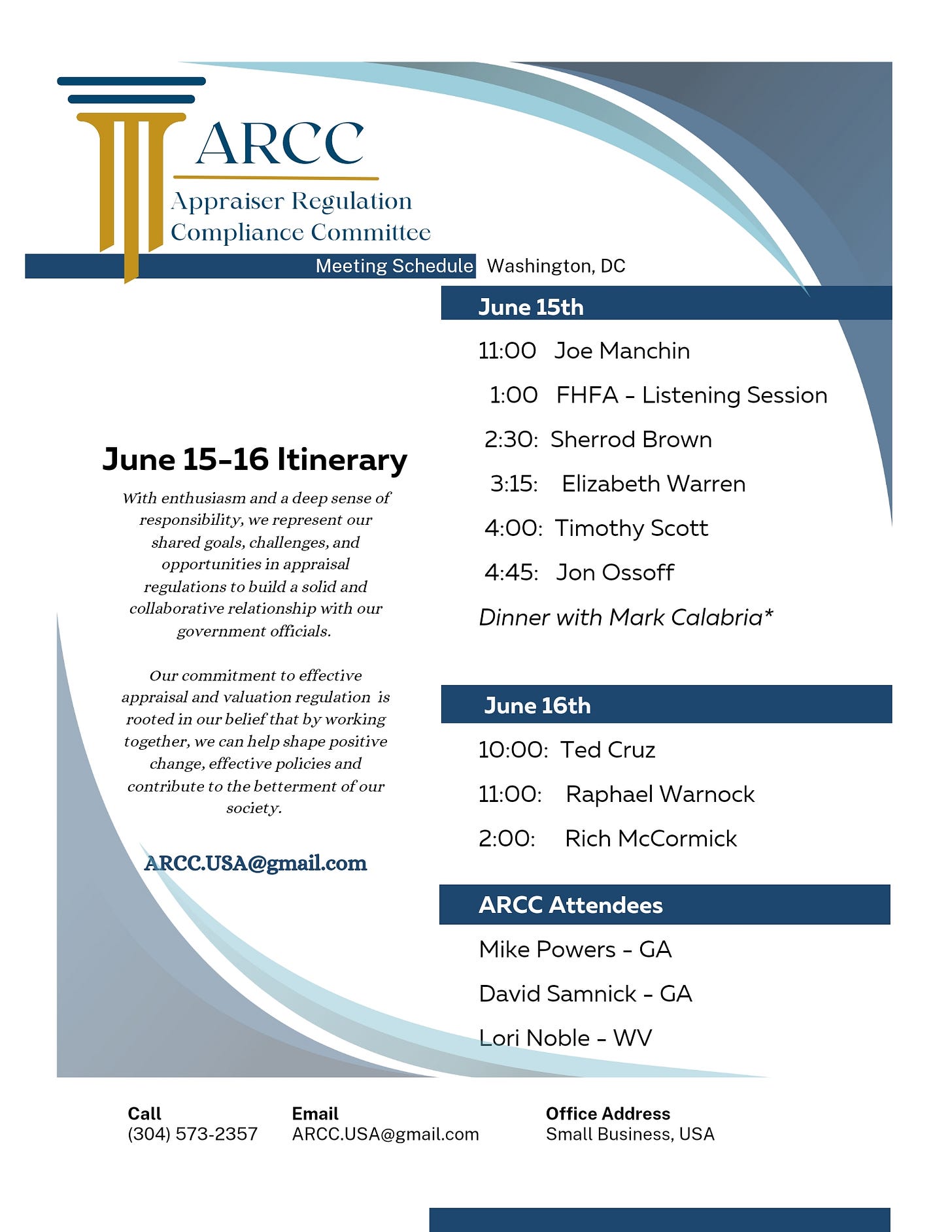 The ARCC Project had some great meetings already in Washington, DC. thanks to Mike Powers, David Samnick and Lori Noble. More details to follow.
