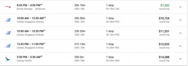 $20,000 for 2 round trip first class from Chicago to Singapore (not sure where he’s from so I picked their HQ location)