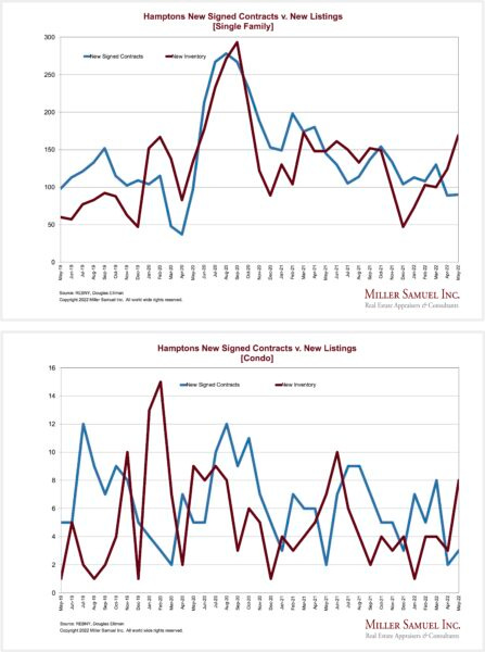 I’ve been the author of an expanding series of market reports for real estate firm Douglas Elliman. The most recent series was born out of the pandemic, our new signed contract reports. With the slow down in new signed contracts, we are finally beginning to see an expansion of new listings from record lows in many markets outside the city.