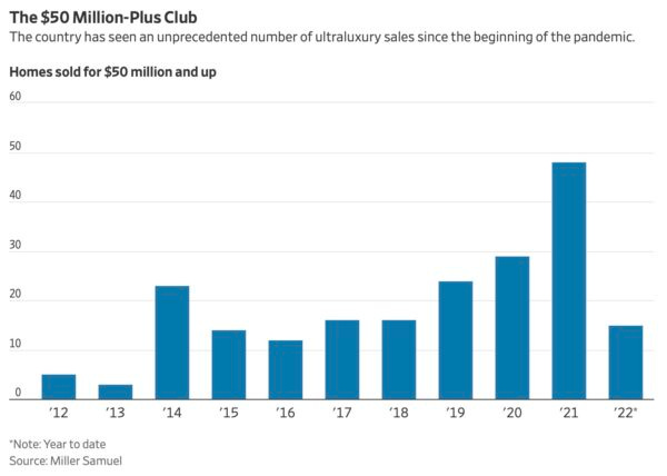 If sales continue at the same rate, 2022 would be the second most sales at or above the $50 million threshold, after the 2021 rocketship. What does this circus sideshow mean to mere mortals like myself and most Housing Notes readers? Nothing, actually. These sales are fun to track and represent a circus sideshow that has little to nothing to do with their respective overall housing markets.