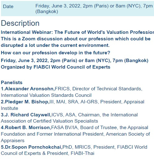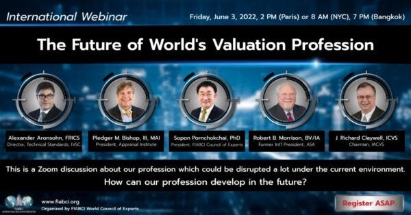 By the time you read this, FIABCI will have already presented the webinar this morning – International Webinar: The Future of World’s Valuation Profession.