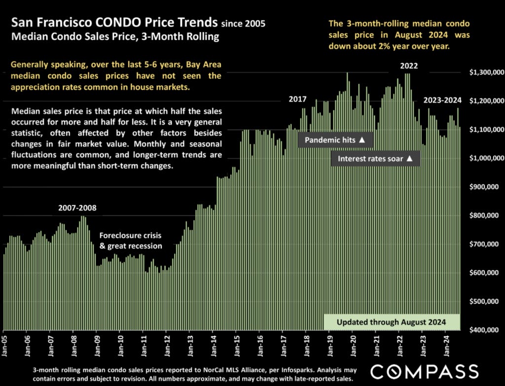 The SF Chronicle piece conflated two market conditions – the overall market and the woes of Millennium Tower – leaving the reader with the impression that San Francisco’s housing prices have plummeted over the decade, yet they haven’t. When a luxury condo tower sinks by 18 inches and tilts by 28 inches, that, my friends, is the problem. Their recent $100 million fix appears to have stabilized the situation and potentially stabilized the damage to current pricing. However, I believe the pricing in the building has been reset to a lower level from the original pricing, regardless of whether the tilt becomes fully “un-tilted.” The “sink and tilt” are part of the building’s legacy story, and by market evidence, it still makes buyers uncomfortable. Let’s not explain the price drop away using WFH.