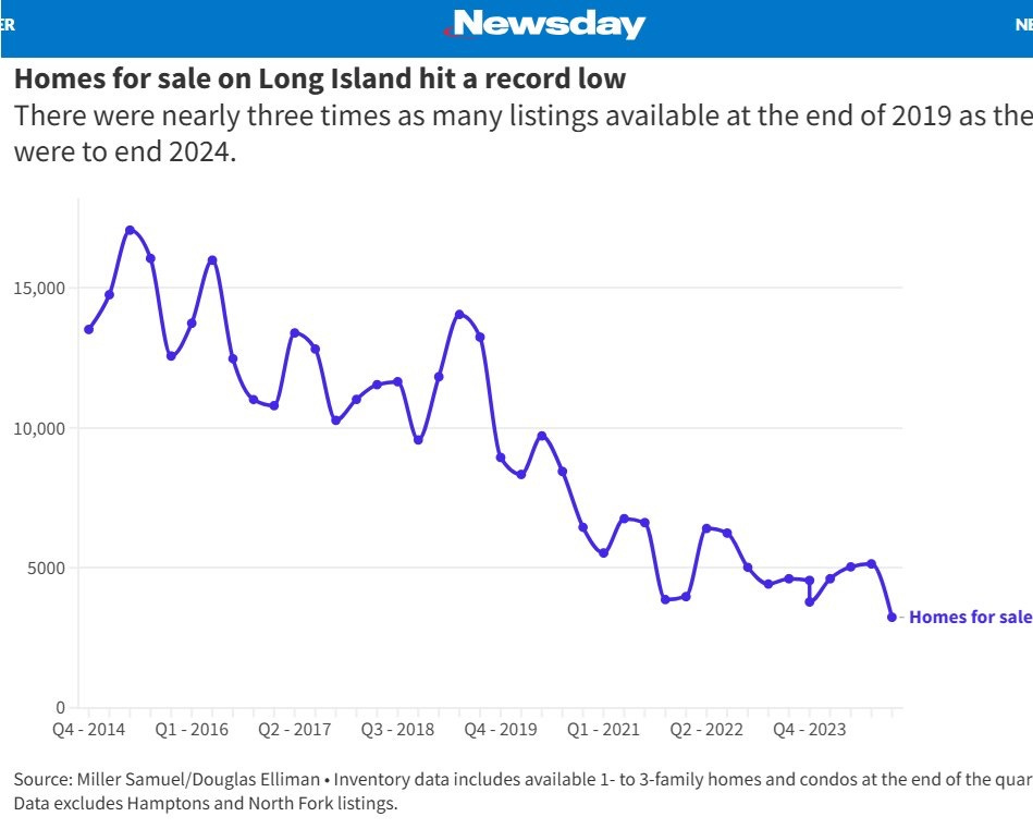Long Island, New York which represents a big chunk of the housing market outside of New York City has seen listing inventory continue to collapse. Newsday chronicled the drop in supply.