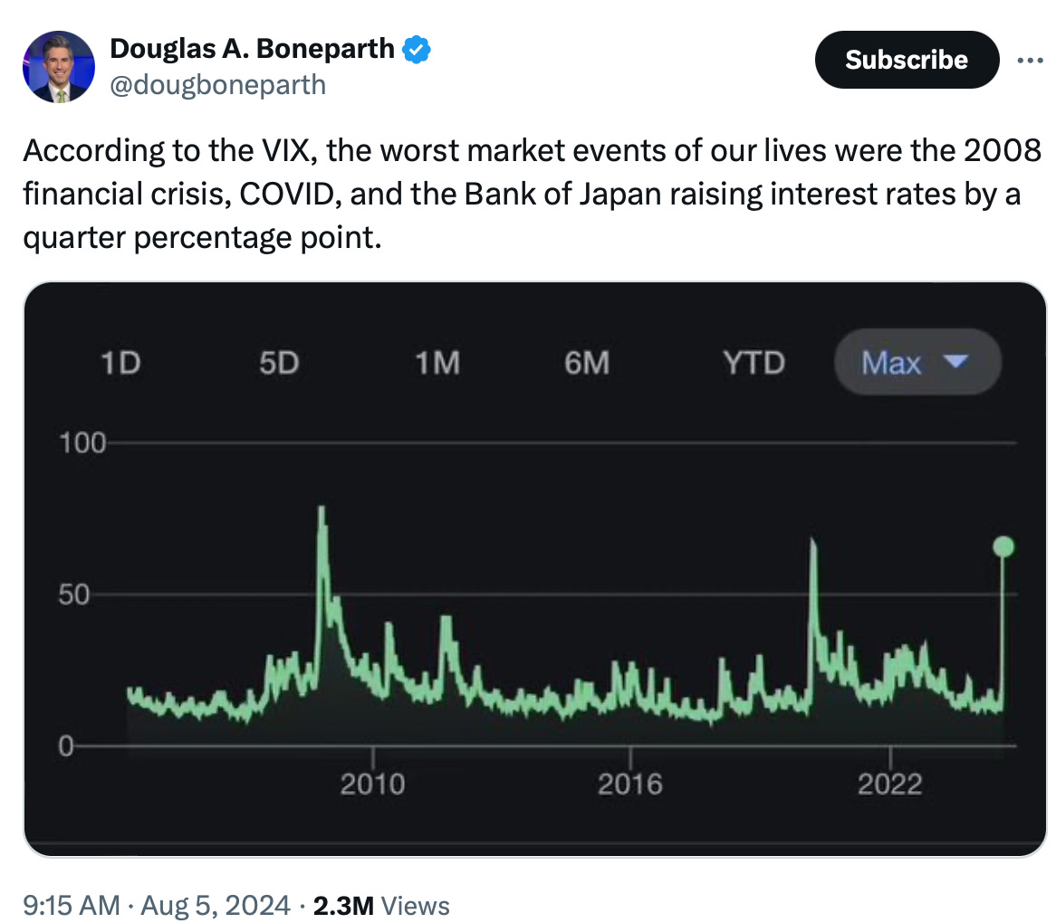 According to the VIX, with measures of financial market volatility, the recent events in Japan were among the top 3 most significant market events of our lives (and most of us don’t even understand the yen carry trade, self-included).