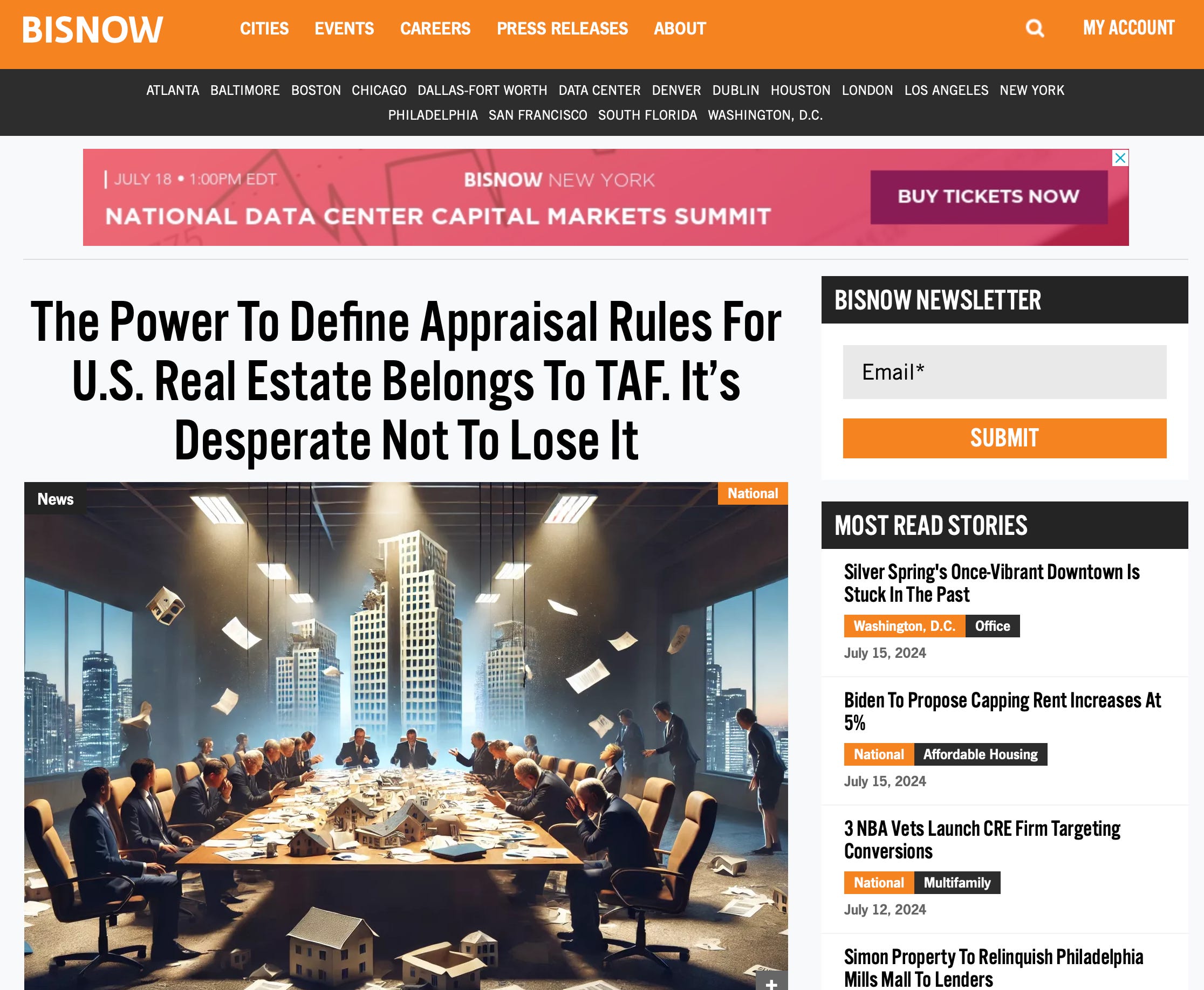 As my friend and appraiser colleague Phil Crawford pointed out to me, the image used in the header of the Bisnow episode 4 was described as AI-generated, probably after being fed keywords about TAF from the coverage. It also sat on the home page of their website all Tuesday. You literally get the picture.