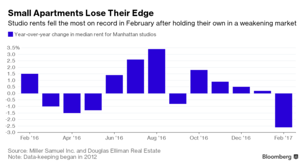 Manhattan Rents Fall for Every Apartment Size, Even Studios [Bloomberg]
