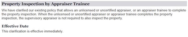 Fannie Mae Allows Trainee Inspections Without Their Supervisory Appraiser