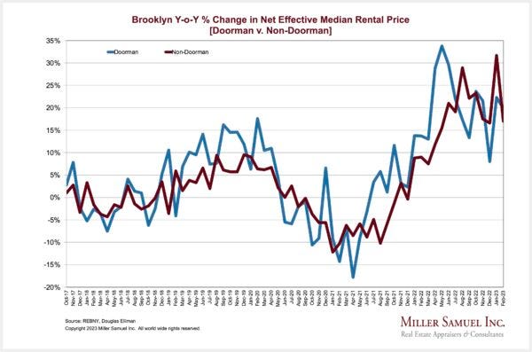 – New development new leases rose year over year at two times the rate of non-doorman rents