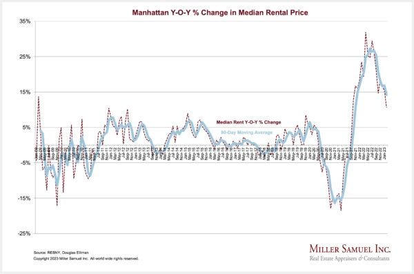 Given the weakening trends observed nationwide, the idea of high NYC rental prices being sustained is of great interest in the financial markets. The Bloomberg piece: Manhattan Apartment Hunters See No Relief From Near-Record Rents, reported on our February 2023 results, was the 10th most-read article on the 325K Bloomberg Terminals worldwide.