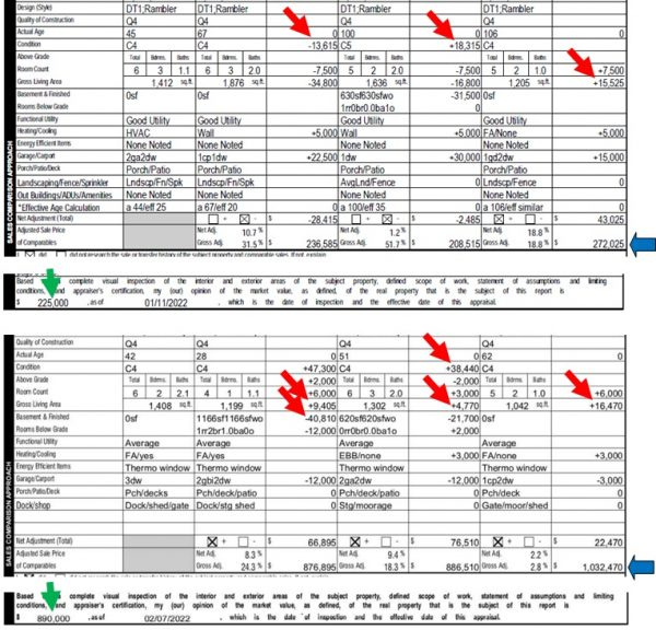 I realize I’m just one “goofy” appraiser with only nearly 21 years in this biz, but in my view, the inconsistent application of ‘rounding’ adjustments in the grid looks incredibly stupid.