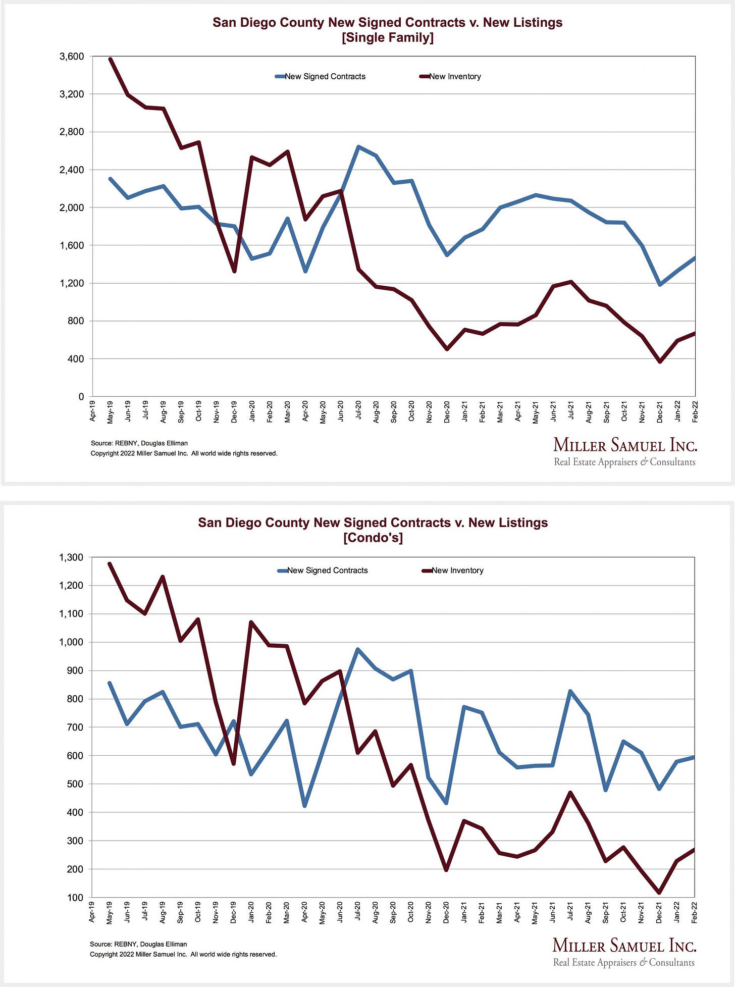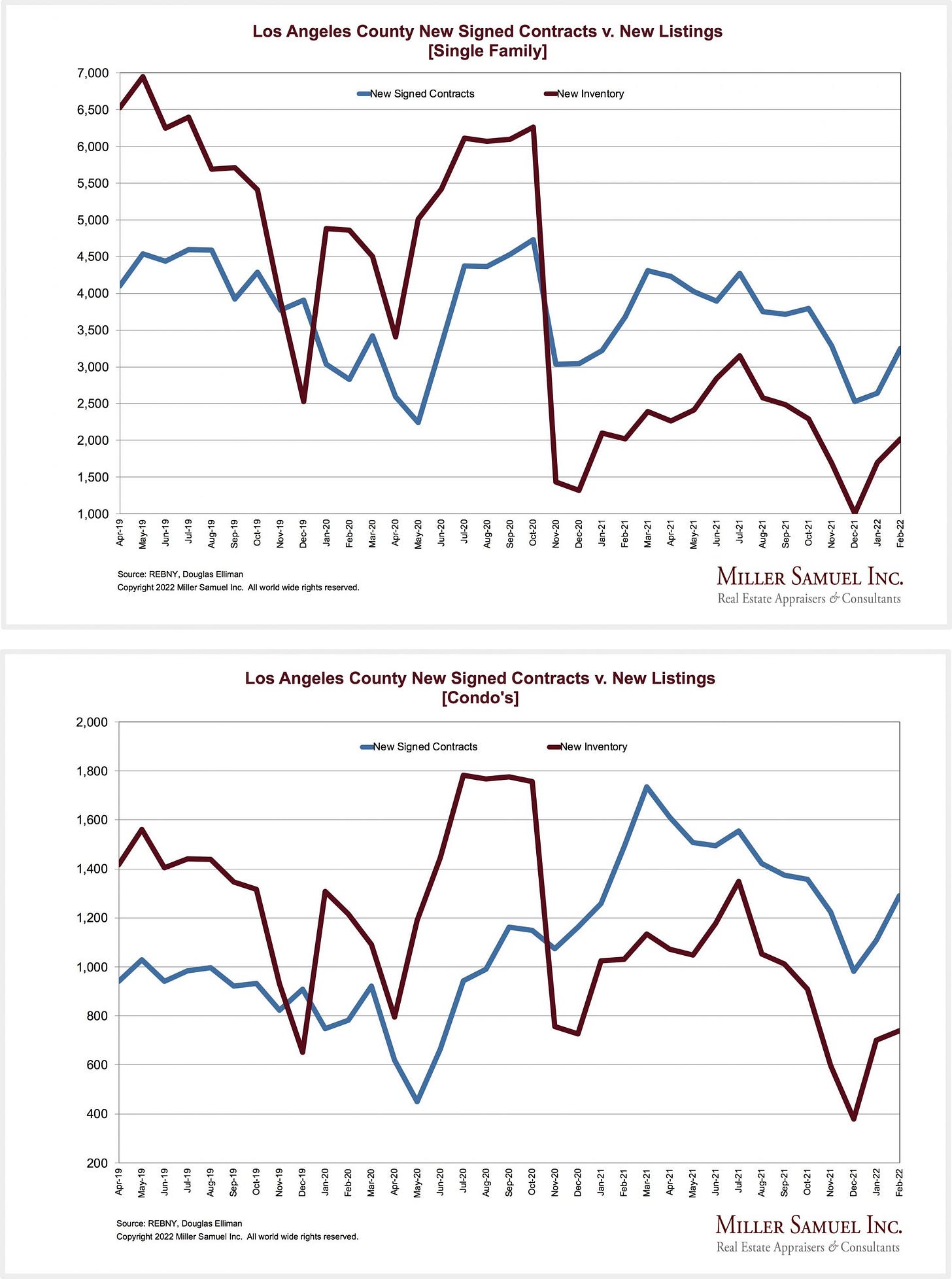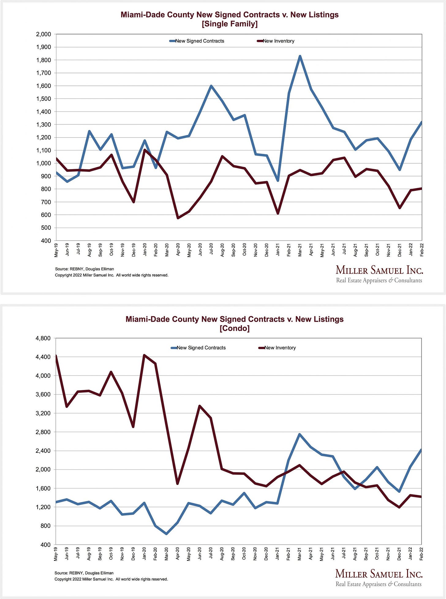 Both new listings and newly signed contracts for both property types have fallen over the past nine months showing that supply cannot meet demand. Overall, newly signed contracts remained below pre-pandemic levels as supply continued to collapse.