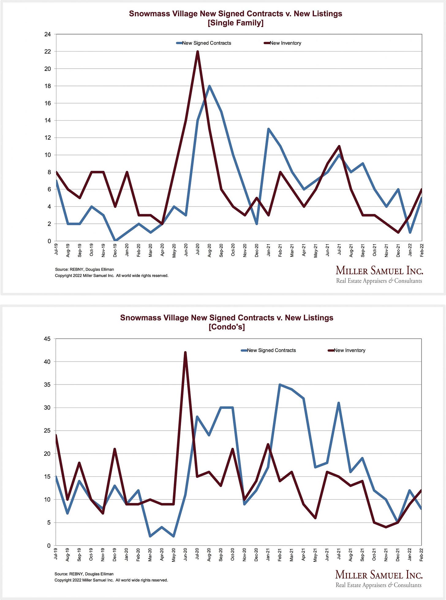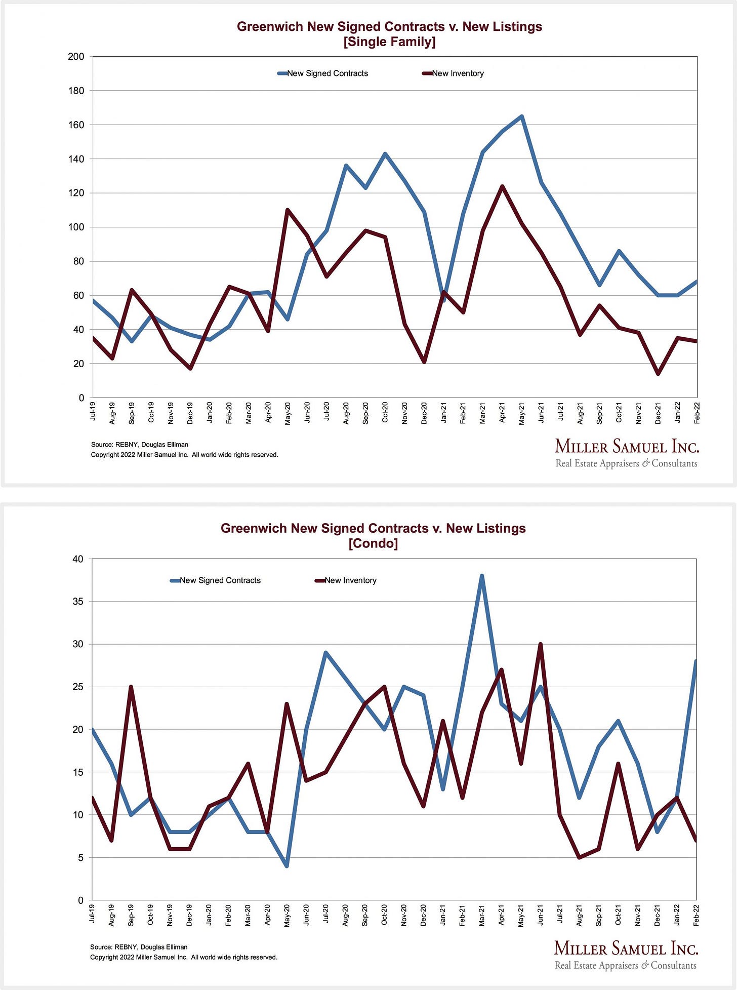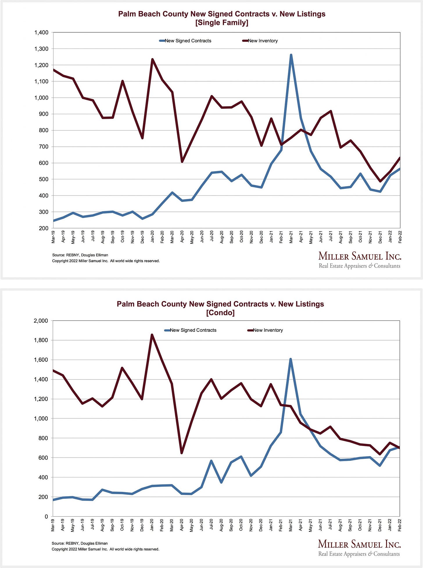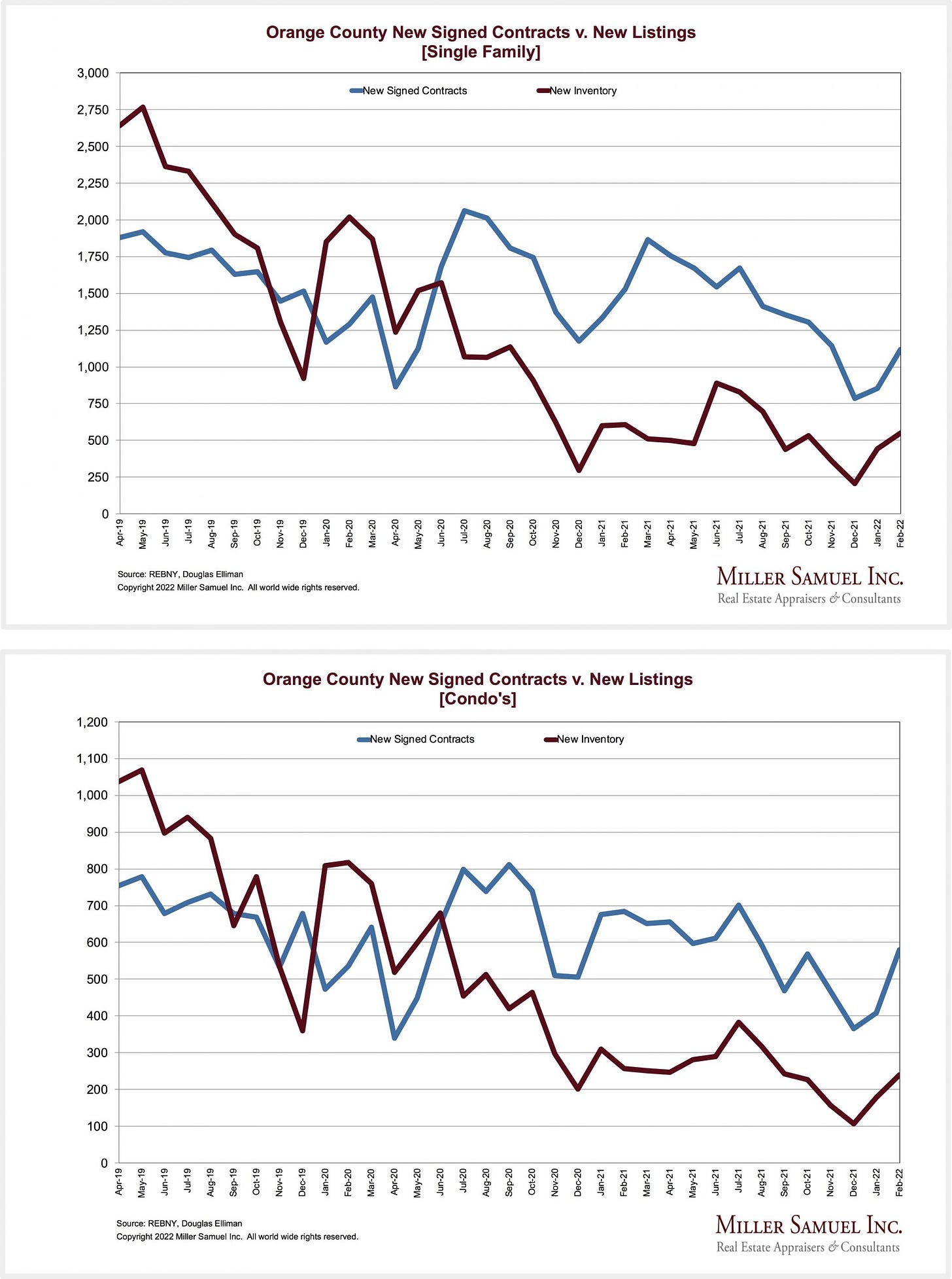 Both new listings and newly signed contracts for both property types have fallen over the past nine months showing that supply cannot meet demand. Overall, newly signed contracts remained below pre-pandemic levels as supply continued to collapse.