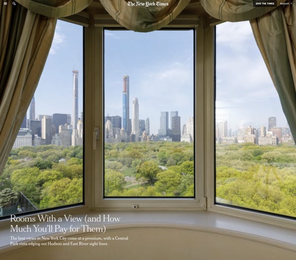 Rooms With a View (and How Much You’ll Pay for Them) [New York Times]