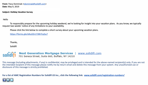 The fact that Solidifi and their competitors are in business to fee out to the lowest bidder makes this request silly because appraisers don’t have that kind of relationship with AMCs. It goes like this. They send out an appraisal request to 10+ appraisers and one of them is on vacation and therefore doesn’t respond. Who cares? In my view, a business that treats its vendors like cattle, can’t call it a professional relationship. In fact, there IS NO RELATIONSHIP. The appraiser as the local market expert is really only a widget to them. AMCs can’t expect to have it both ways. If appraisers weren’t bombarded with paperwork and dogged by phone calls from a 19-year-old chewing gum already then this would not be an issue.