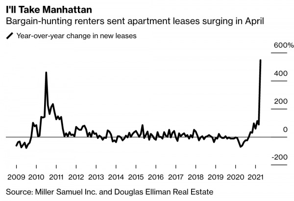The crap New Yorkers read early in the pandemic got lots of SEO points but was a disservice to the public. There is nothing wrong with being critical, but proclamations about a dire dystopian hellscape future became its own misleading narrative. This CNBC tweet comparison uses our data from the recent rental report discussed later on in these notes.