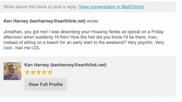 You’re obviously full of insights and ideas as a reader of Housing Notes. I appreciate every email I receive and it helps me craft the next week’s Housing Note.