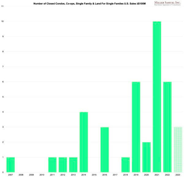 This has been a lackluster sales year for super lux, but despite the lower number of sales, the average price per transaction is off the charts. I’ve been closely tracking the US $50 million-plus market since 2014 and have historically closed residential sales since 2000, plus a bunch of giant ranch sales.