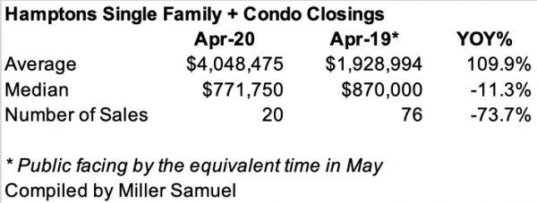 Year over Year April Hamptons Sales Down 73.7%