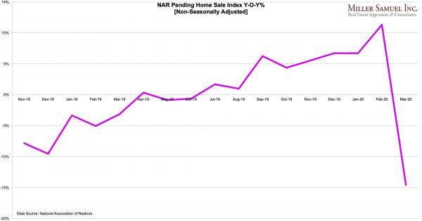 There are specific periods, especially in quickly deteriorating markets, when large swaths of contracts don’t close. I recall that about one-third of pending sales blew up shortly after the housing bubble burst more than a decade ago. Just prior to the Coronavirus crisis, the contract failure rate was in the single digits. I haven’t found fresh post-COVID19 data on this yet (because it is lagging).