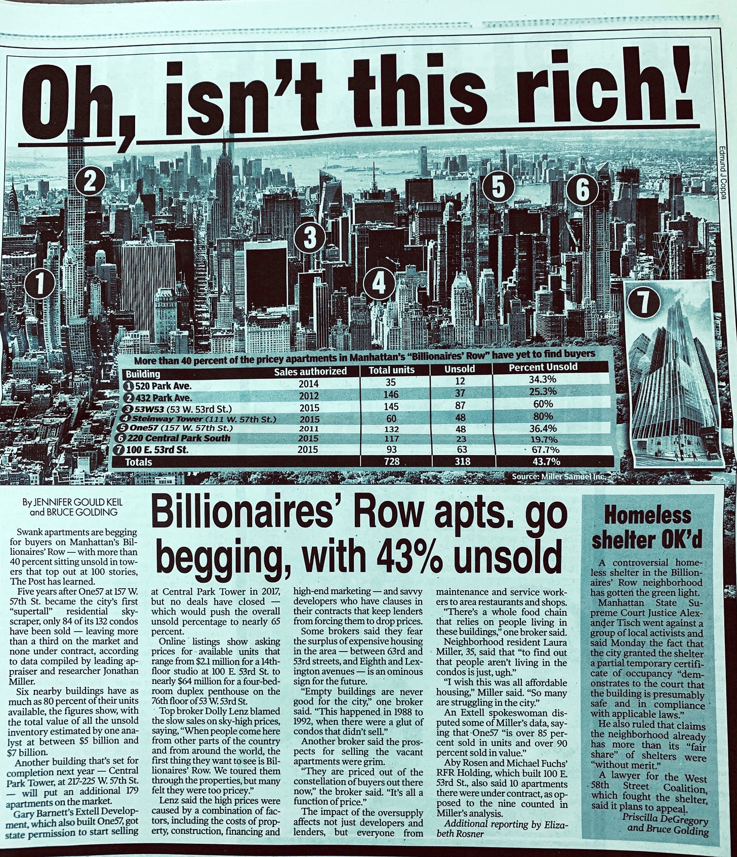 Developers struggling to sell swanky ‘Billionaires’ Row’ apartments [NY Post]