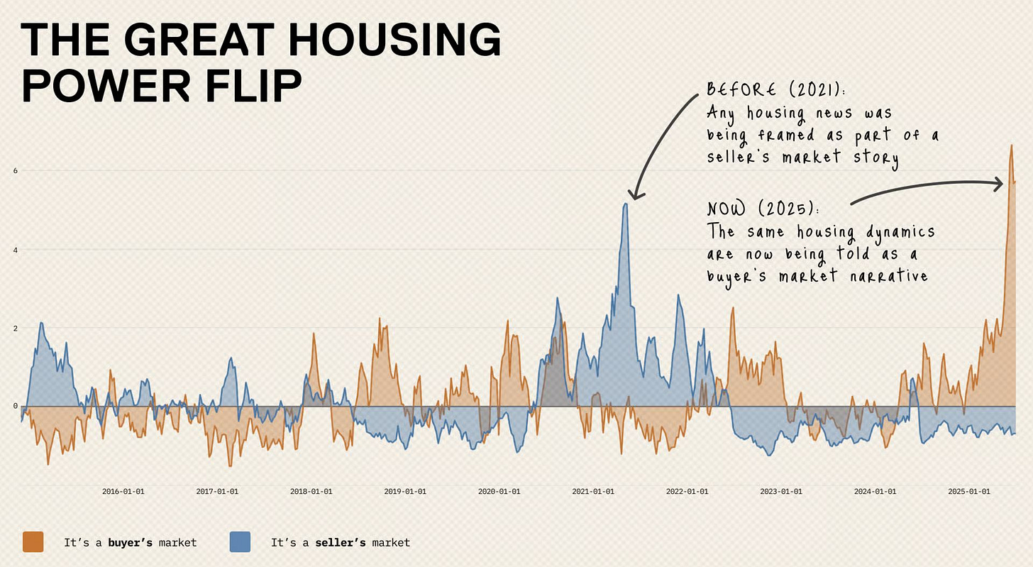 I’ve been a reader at Epsilon Theory for years, even though much of the content focuses on financial market narratives rather than housing. Admittedly, I struggle to multitask when reading their content. I need to concentrate, which is tough to do when doomscrolling. Ha. And I tend not to think of the housing market as a stock or “trading” opportunity with a bid-ask perspective, but rather as a usable asset. It’s a slow-moving and lumbering (today’s favorite word) asset.
